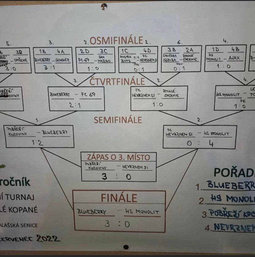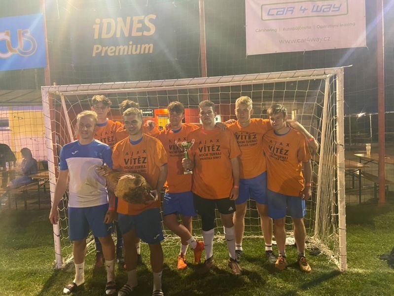Dorostenci našeho klubu Lukáš Gargulák a Martin Číž se svým týmem Blueberry ovládli tradiční noční turnaj ve Valašské Senici. Lukáš Gargulák přispěl pěti trefami a Martin Číž měl na starosti obranu. Ve finále porazili tým HS Monolit 3-0 a ovládli tak noční turnaj. Gratulujeme k jejich úspěchu.